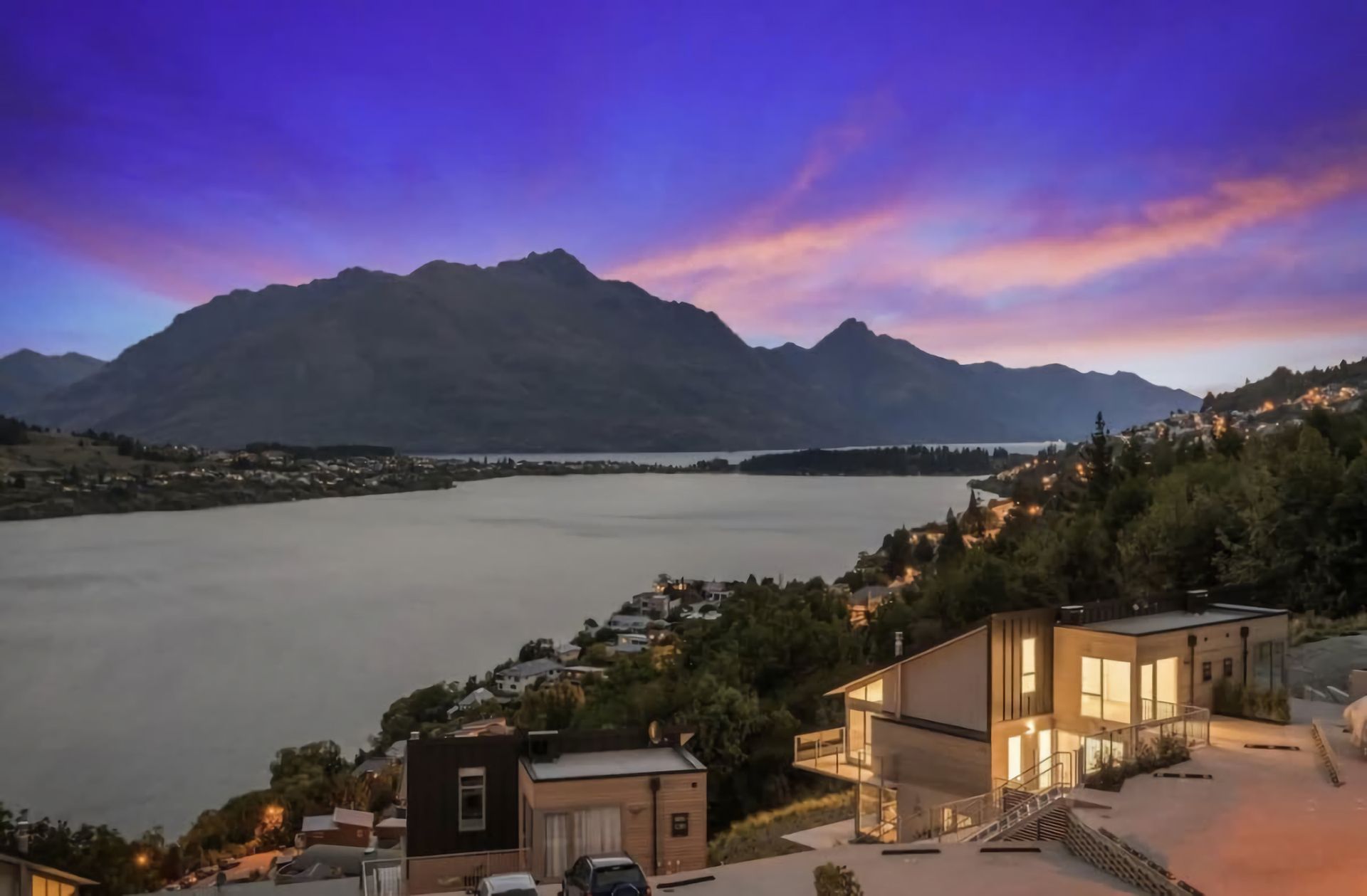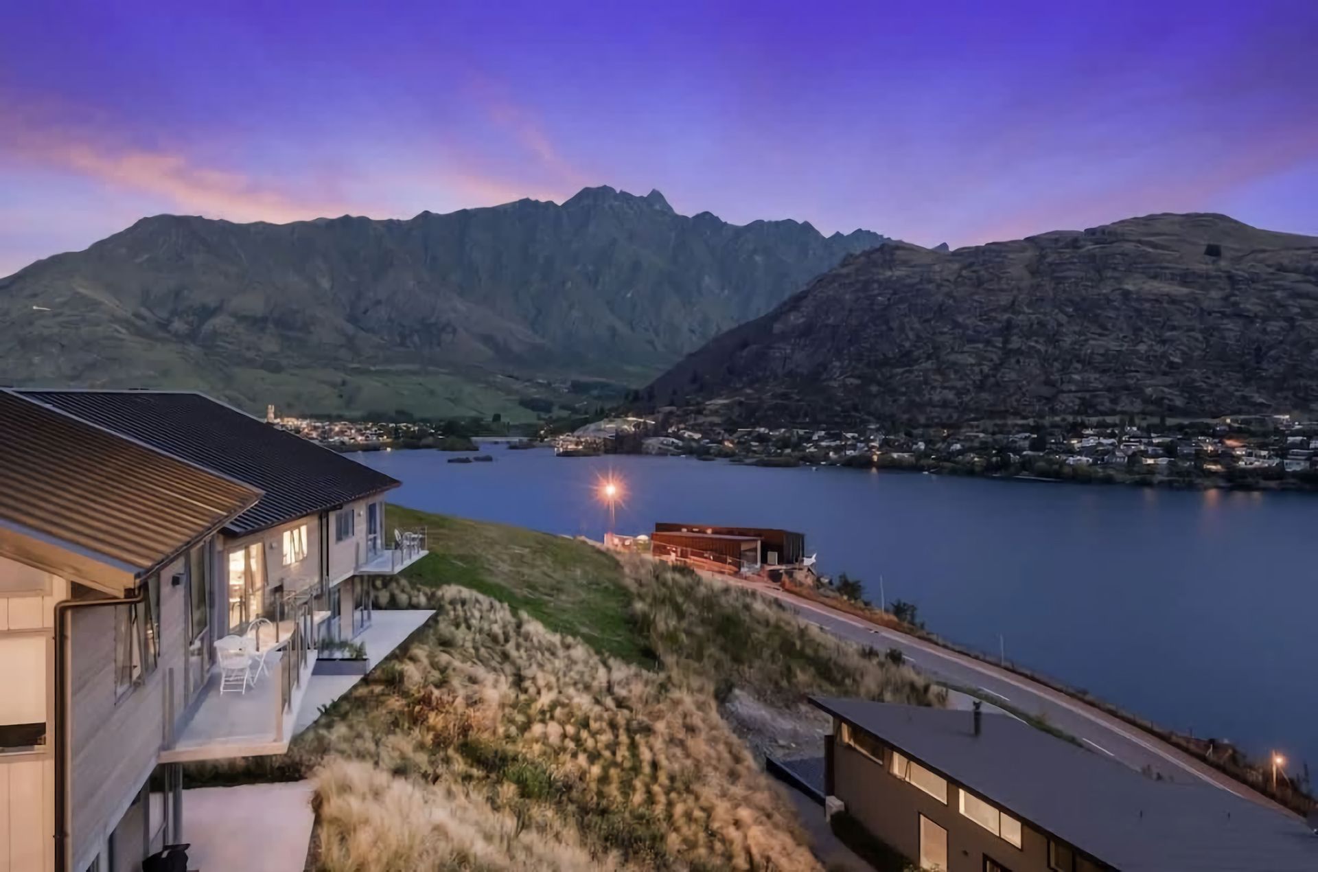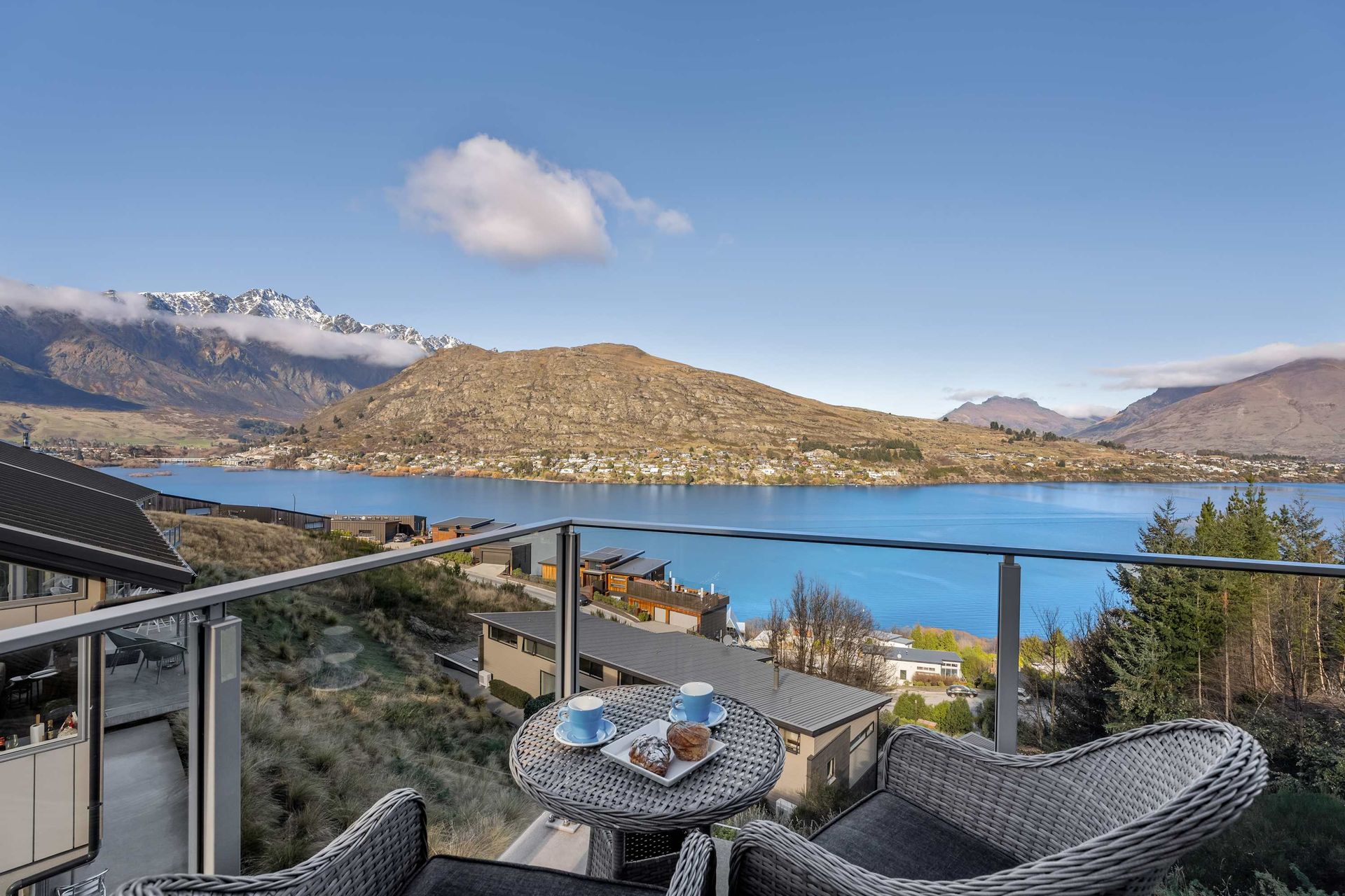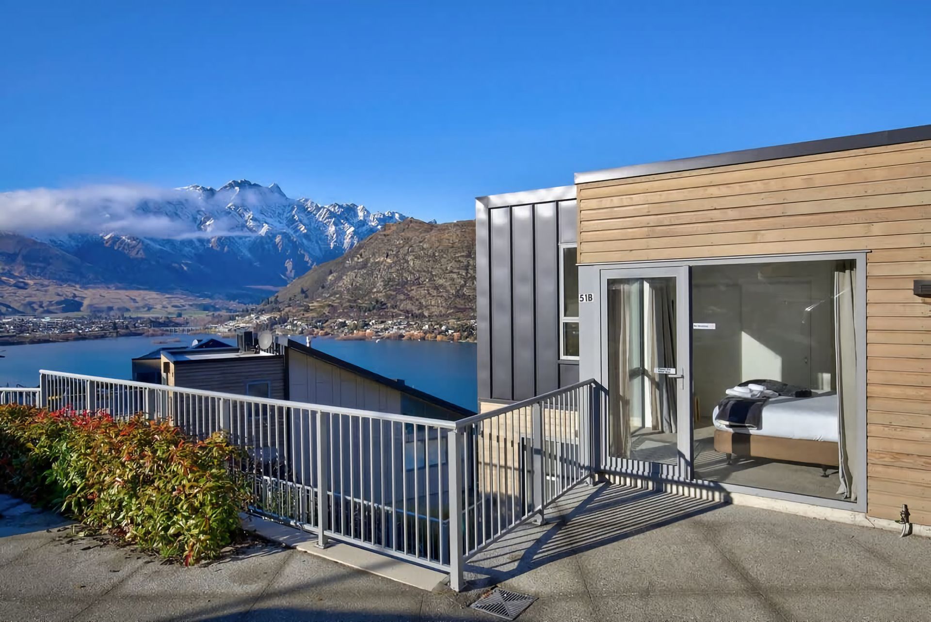 Positioned on the hill halfway to Frankton and Queenstown, the location is unbeatable. You're a short drive to the centre of Queenstown, Queenstown Airport, ski fields, and shopping in Frankton. At the bottom of the hill is a bus stop close by, and walking tracks that lead you to the lake or the Marina where you will find fantastic eateries.
