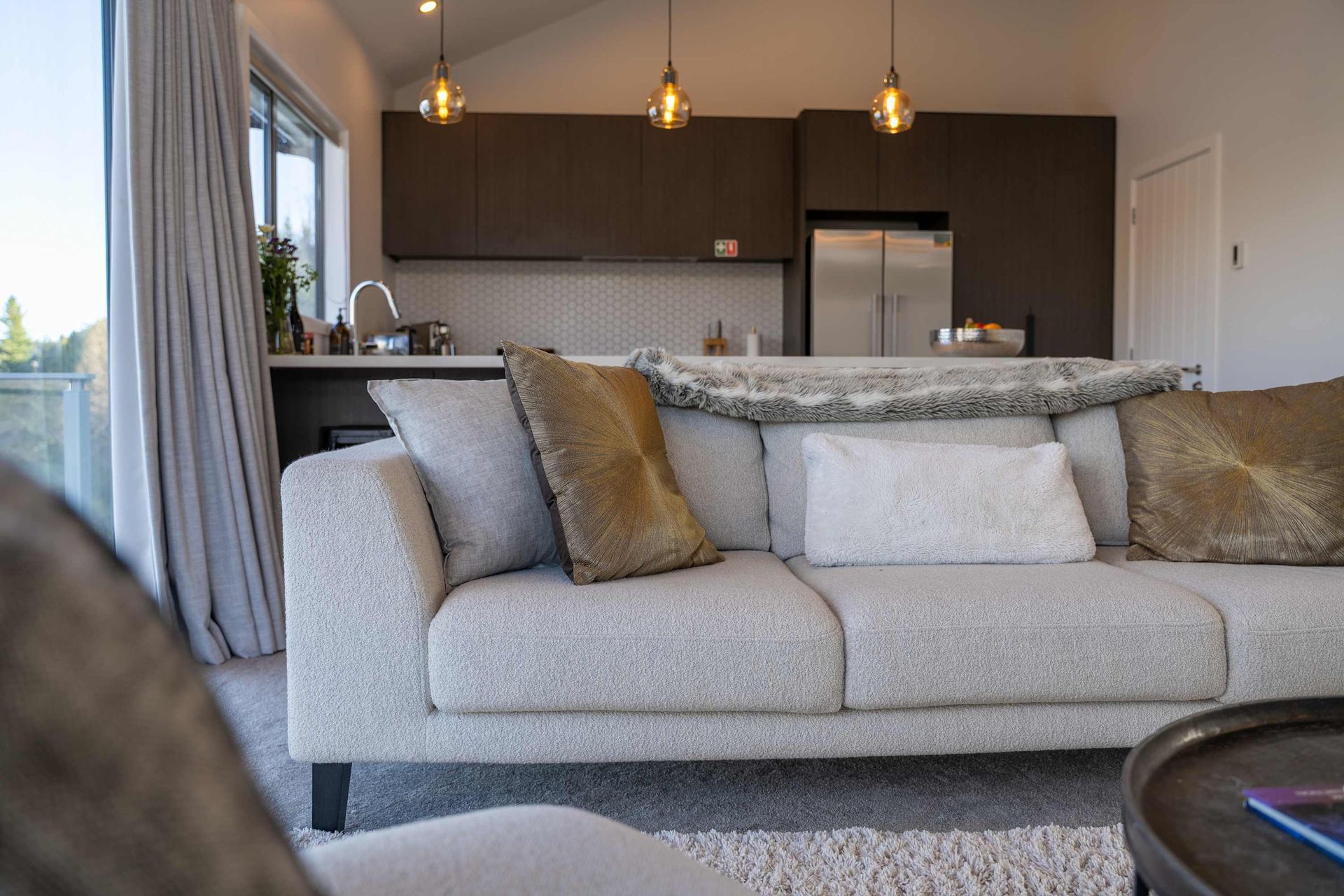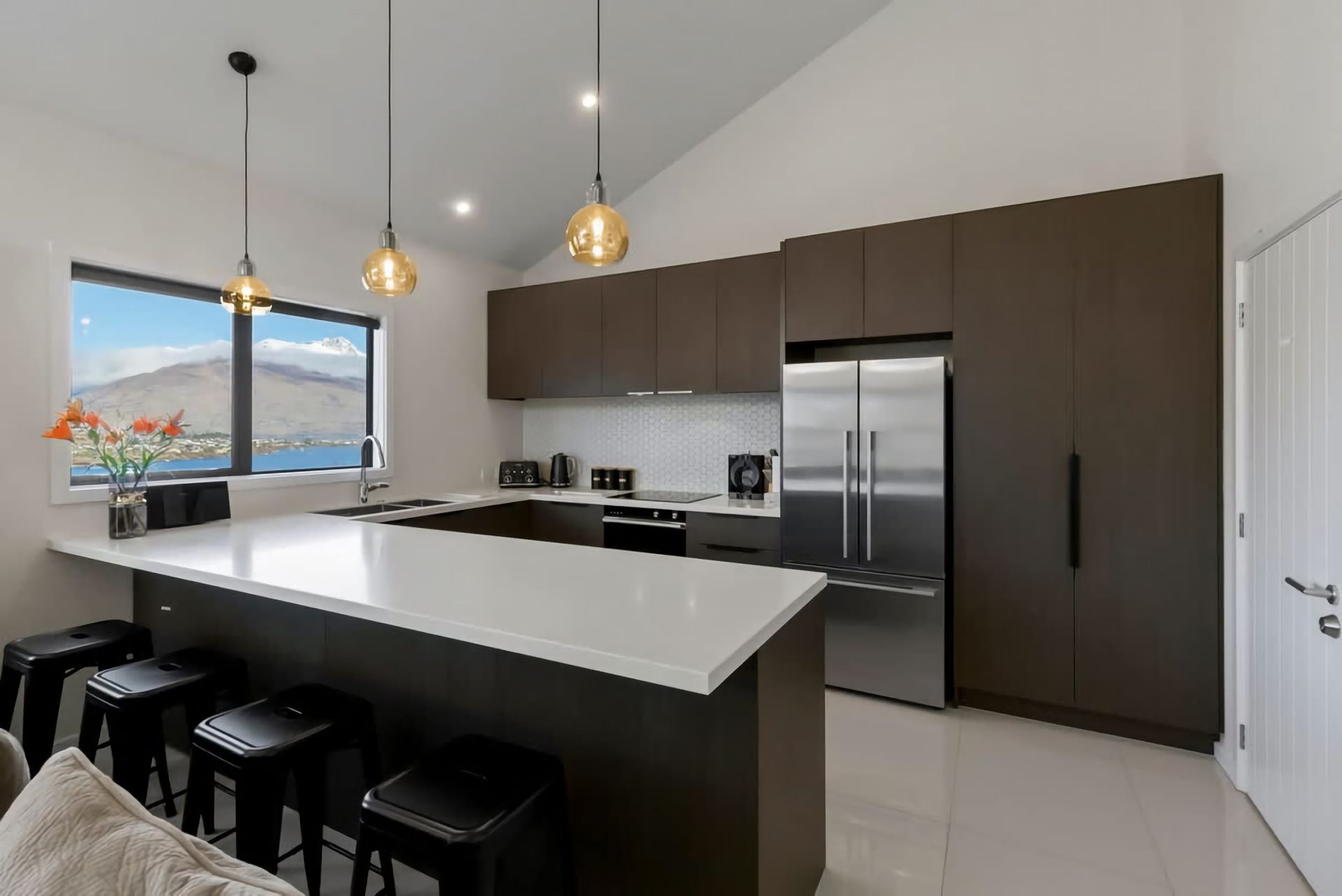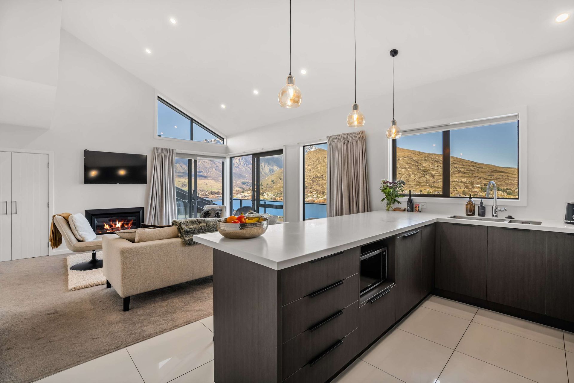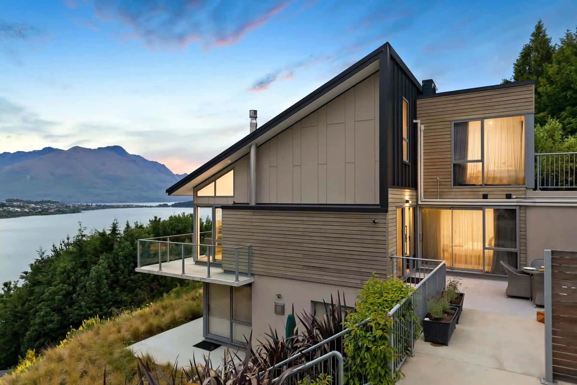 Positioned on the hill halfway to Frankton and Queenstown, the location is unbeatable. You're a short drive to the centre of Queenstown, Queenstown Airport, ski fields, and shopping in Frankton. At the bottom of the hill is a bus stop close by, and walking tracks that lead you to the lake or the Marina where you will find fantastic eateries.