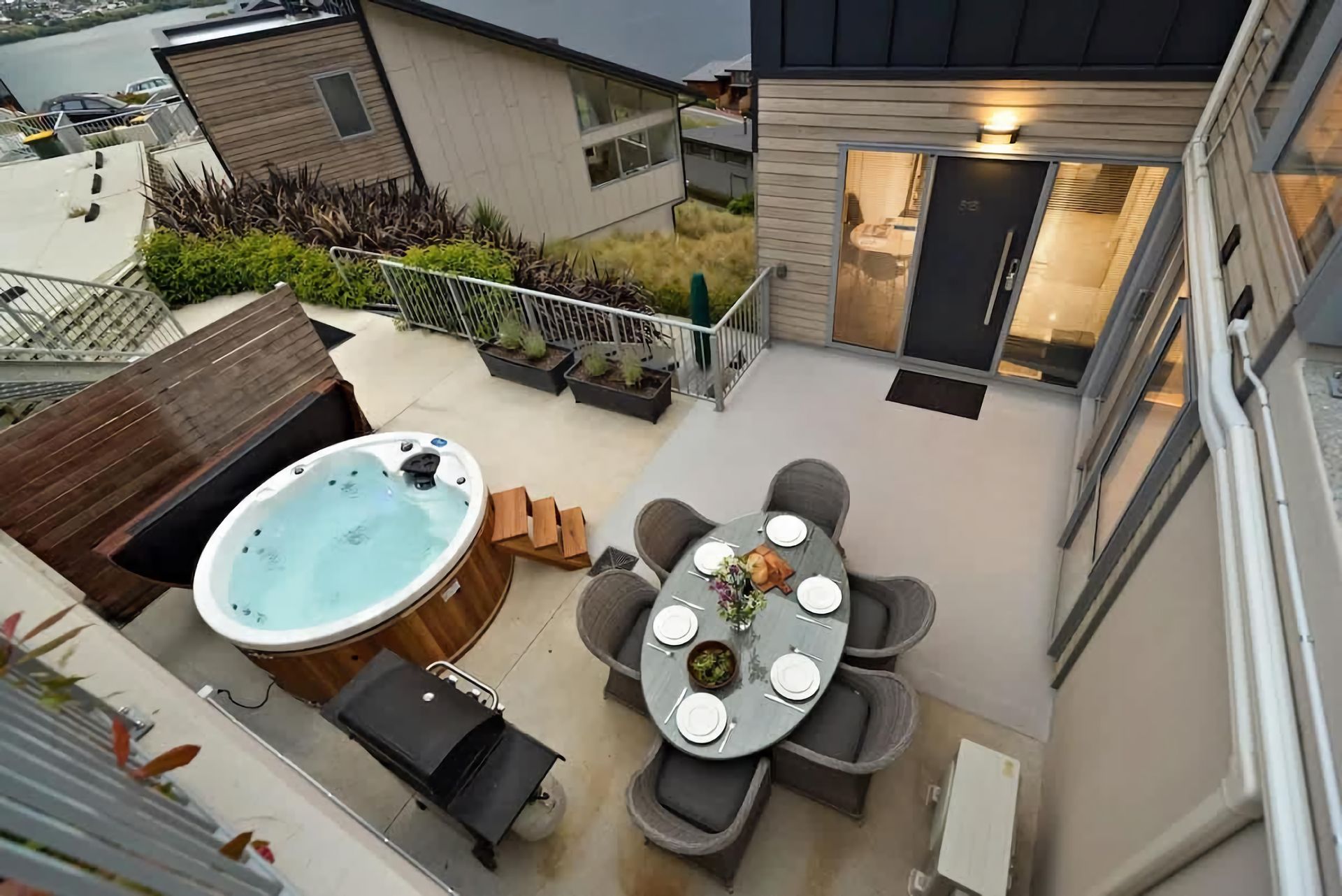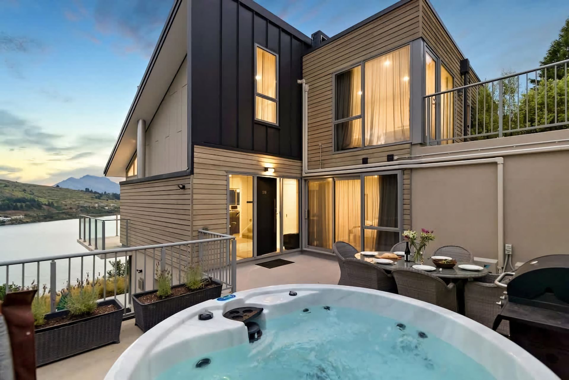 Step onto your private terrace or balcony, elevated on the hillside, offering unparalleled lakeside vistas. Enjoy al fresco moments with a large dining table and barbeque with the calming ambience of the lake below. The terrace also offers a private Hot Tub so you can relax after a long day of exploring.