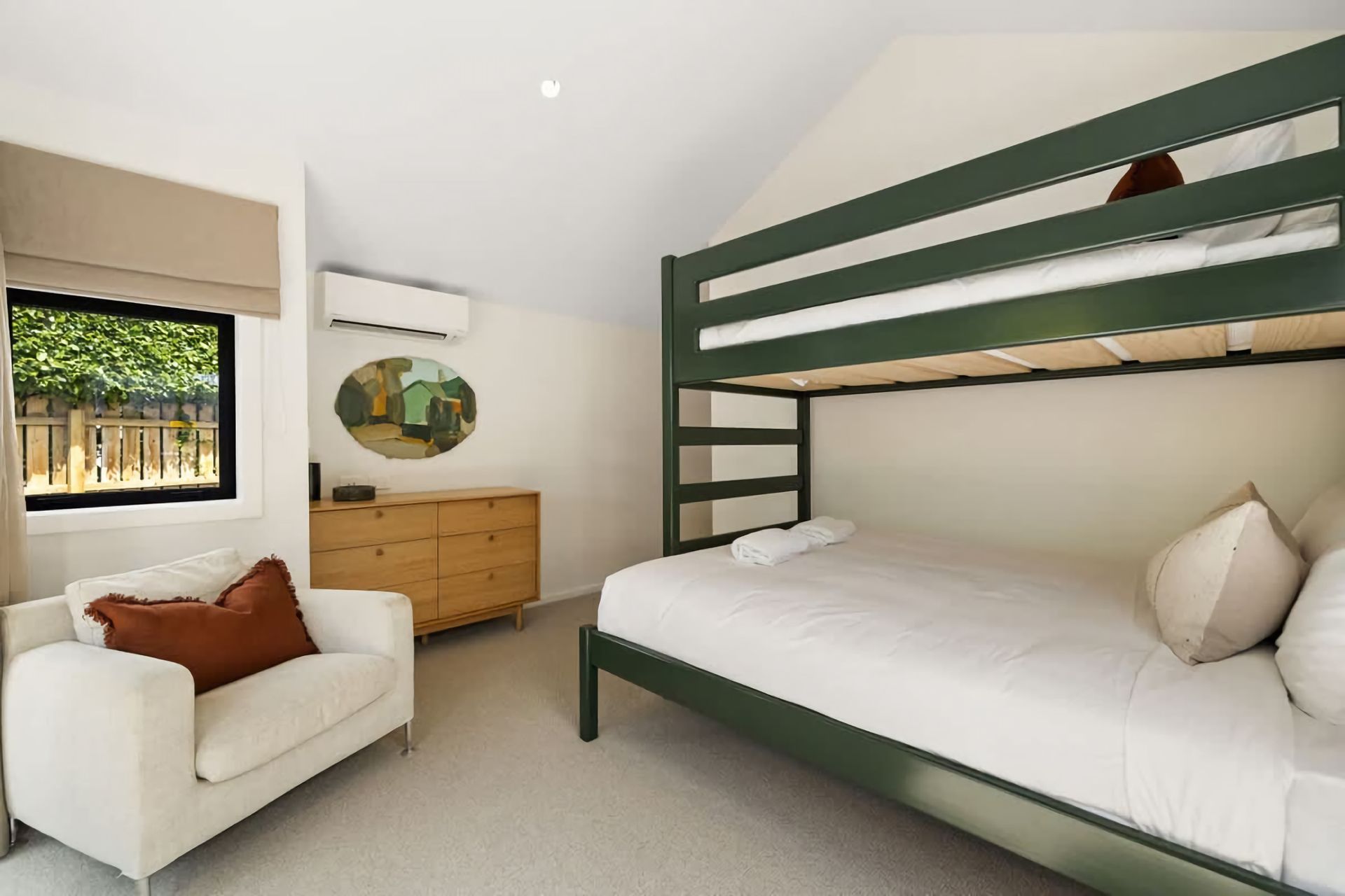 Sleepout -1x Queen Bed, 1x King Single (bunks) Please note this room has external excess from the garden - you can not access through the main house.