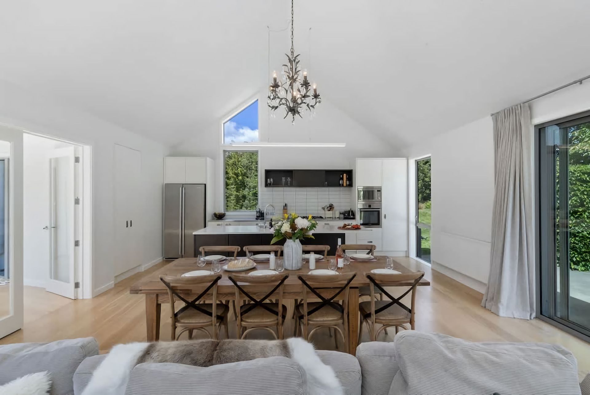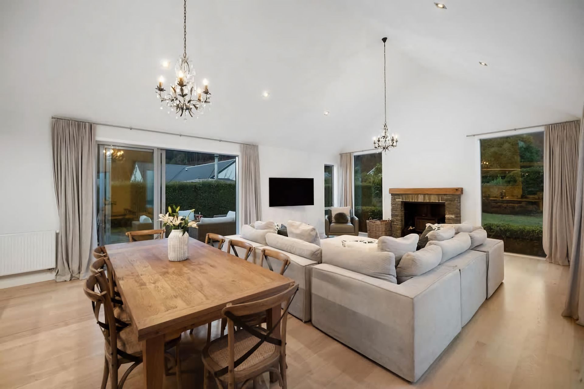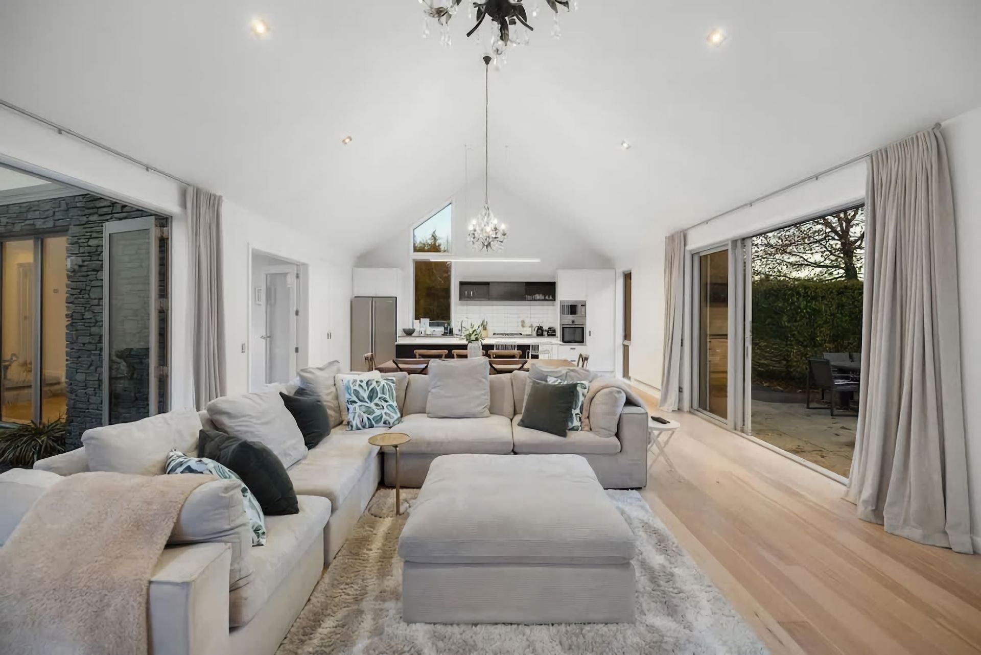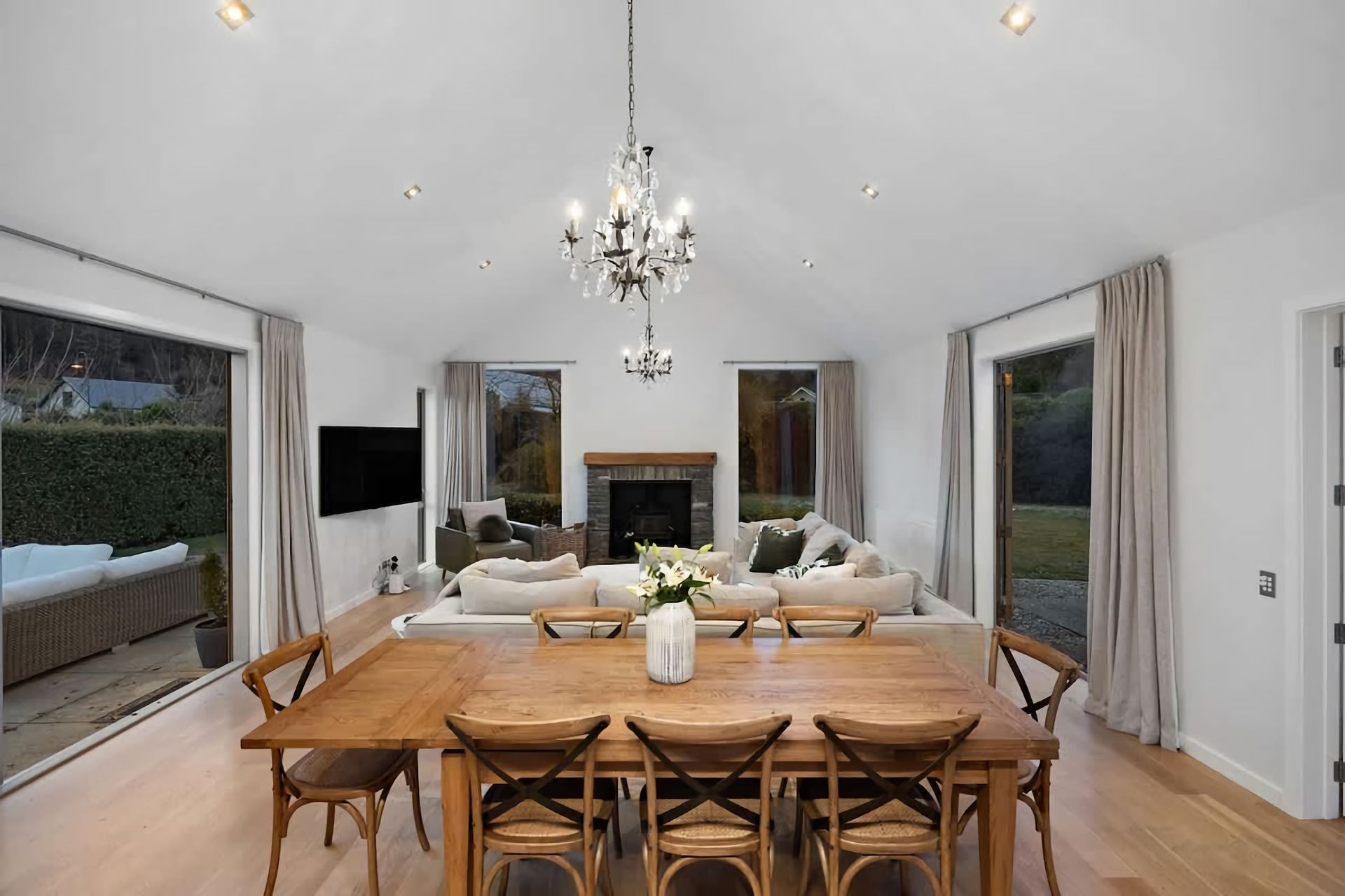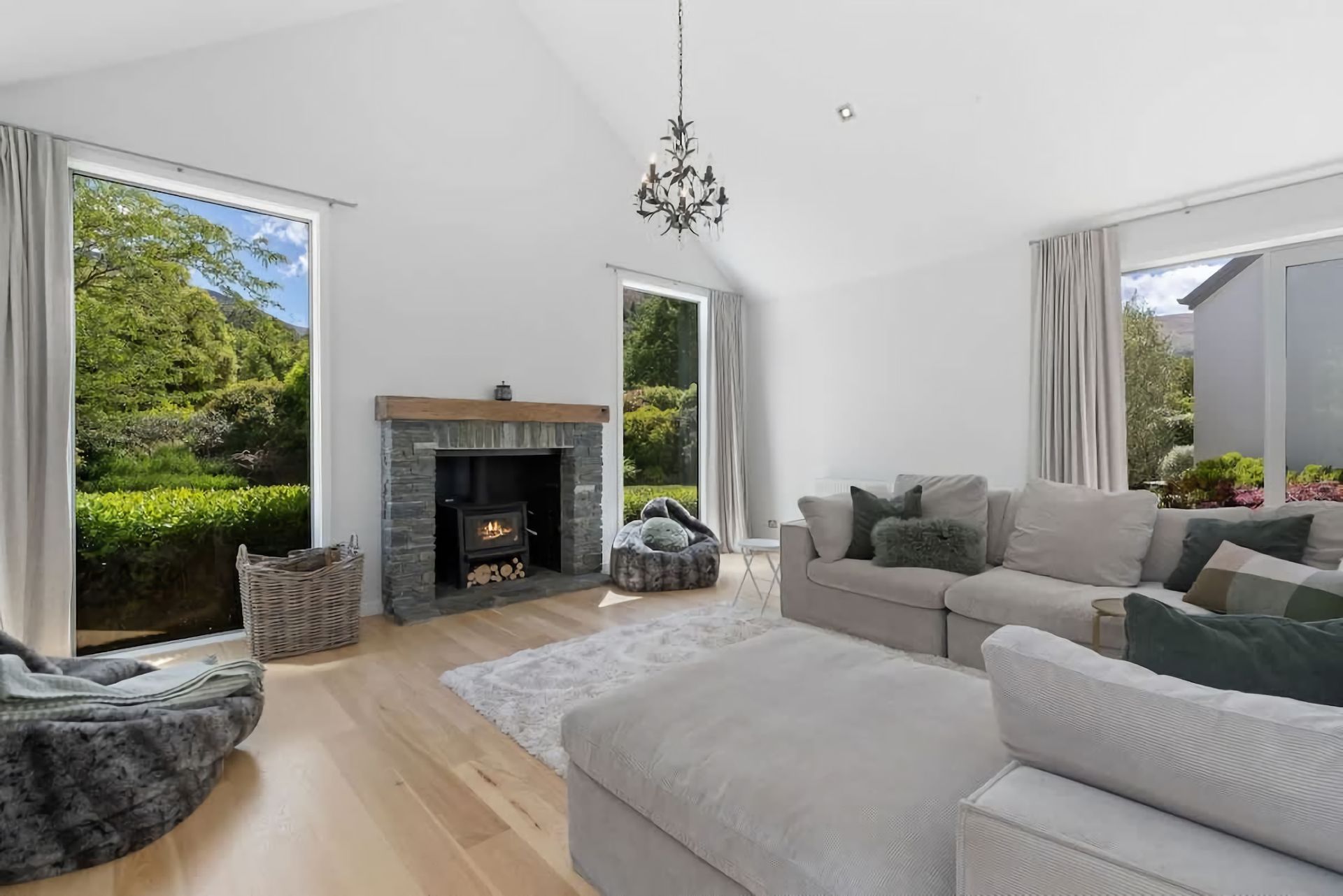 Relax in a comfortable living area with a cozy atmosphere. Large windows bring in natural light and provide views of the surrounding beauty. Enjoy outdoor living in a serene environment. Private garden space for al fresco dining, including a large barbeque or peaceful moments in the hot tub.