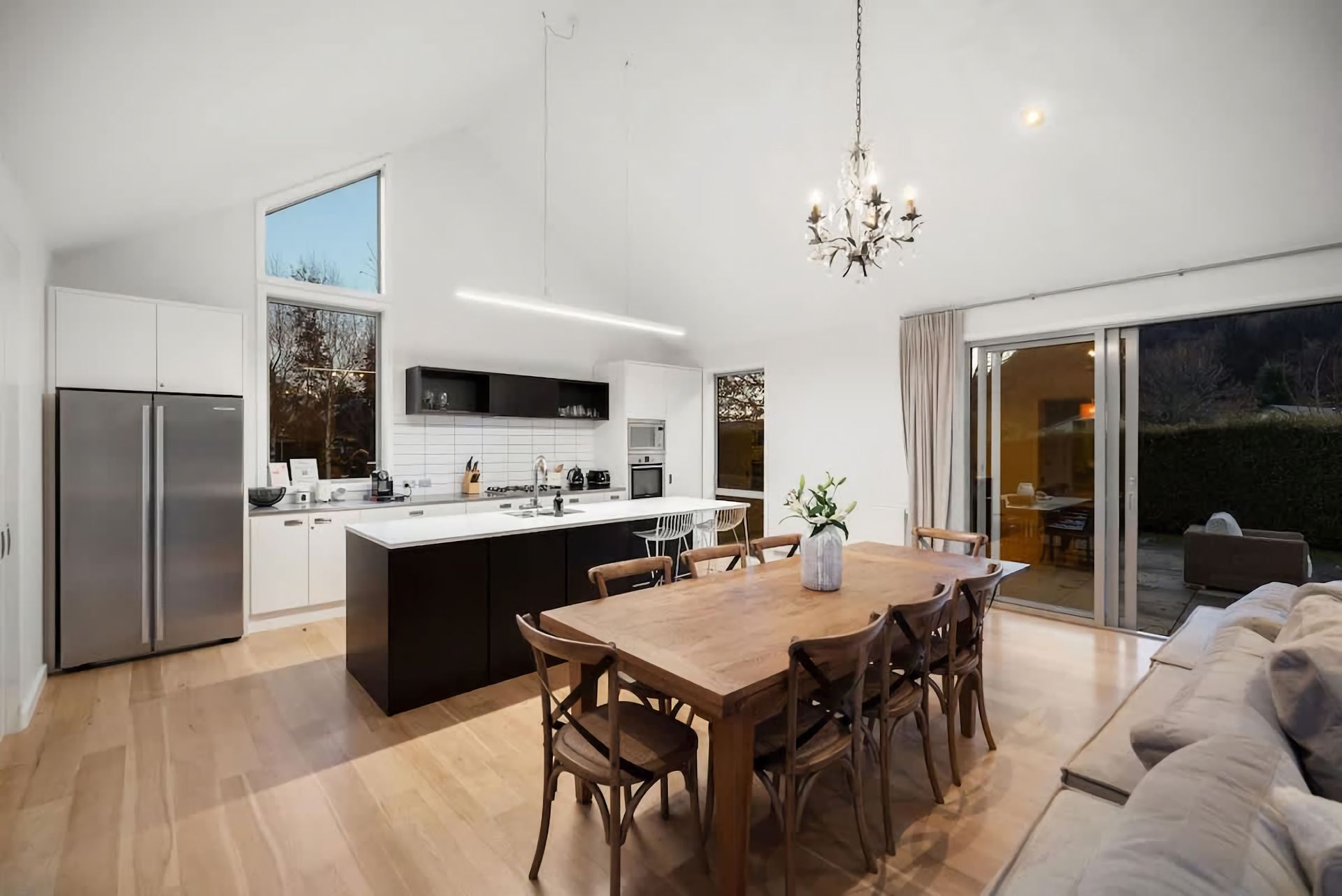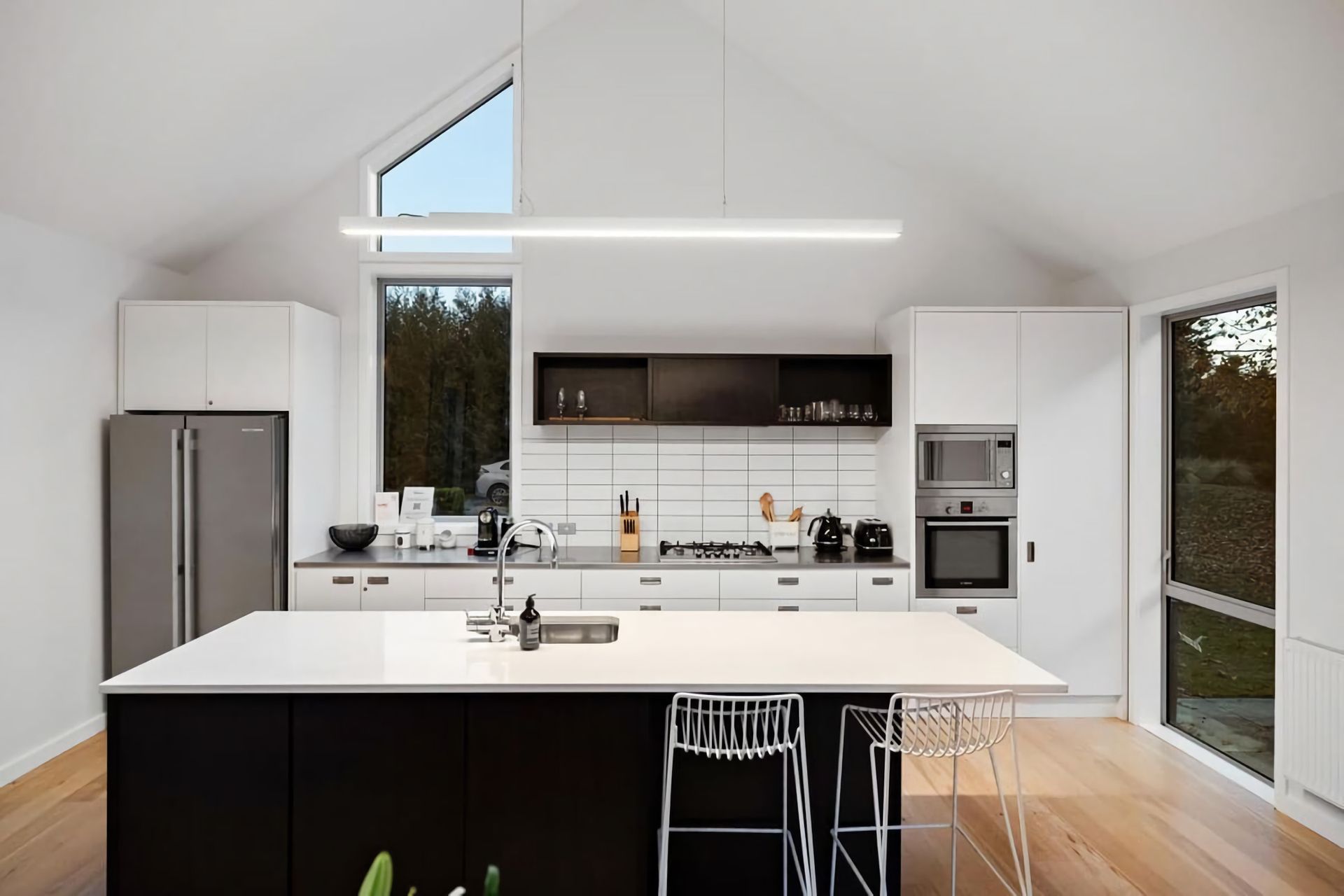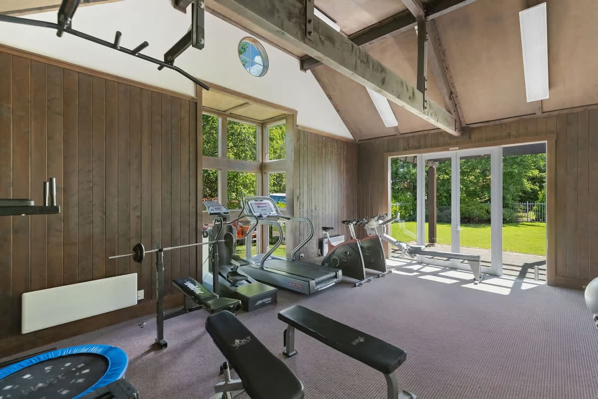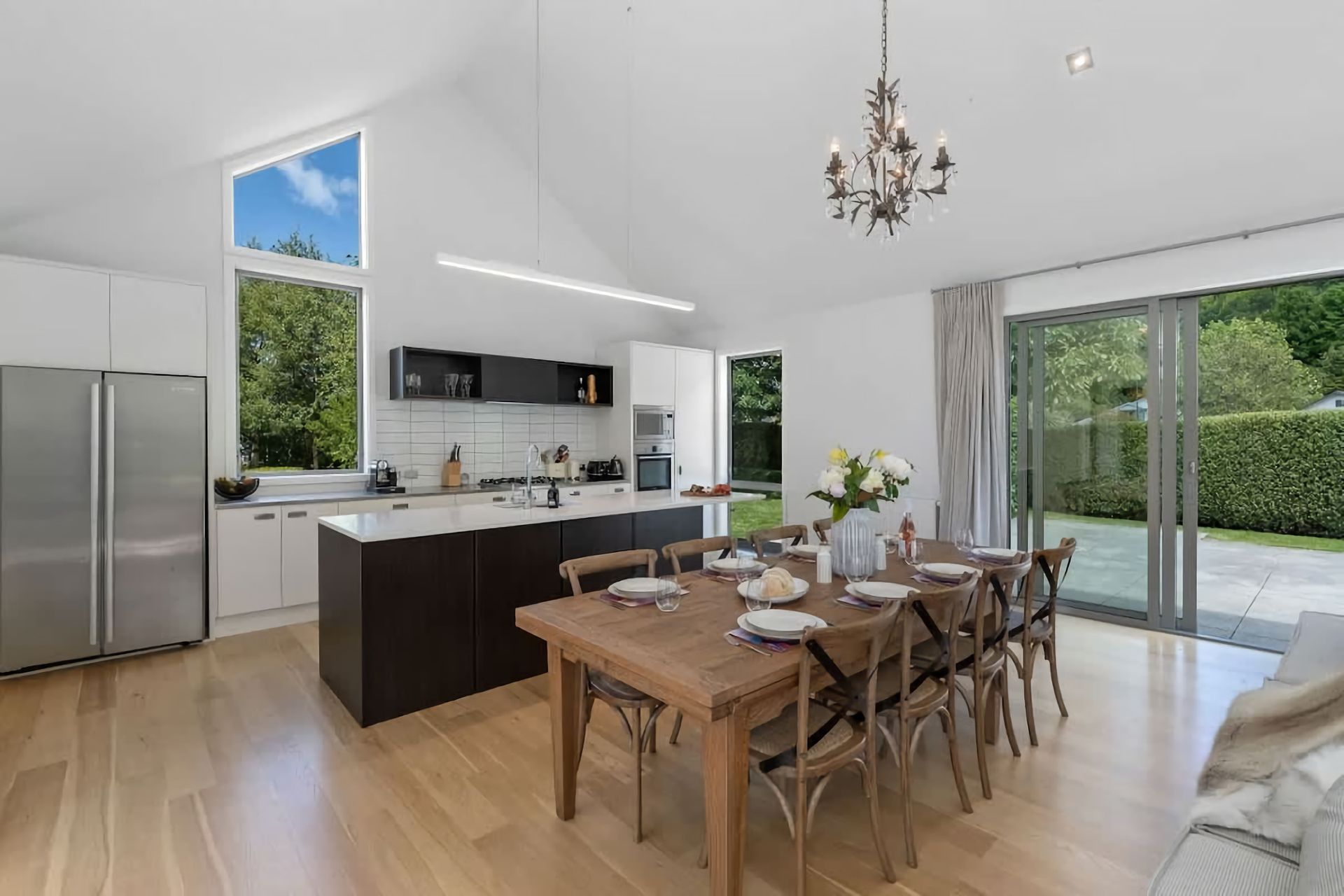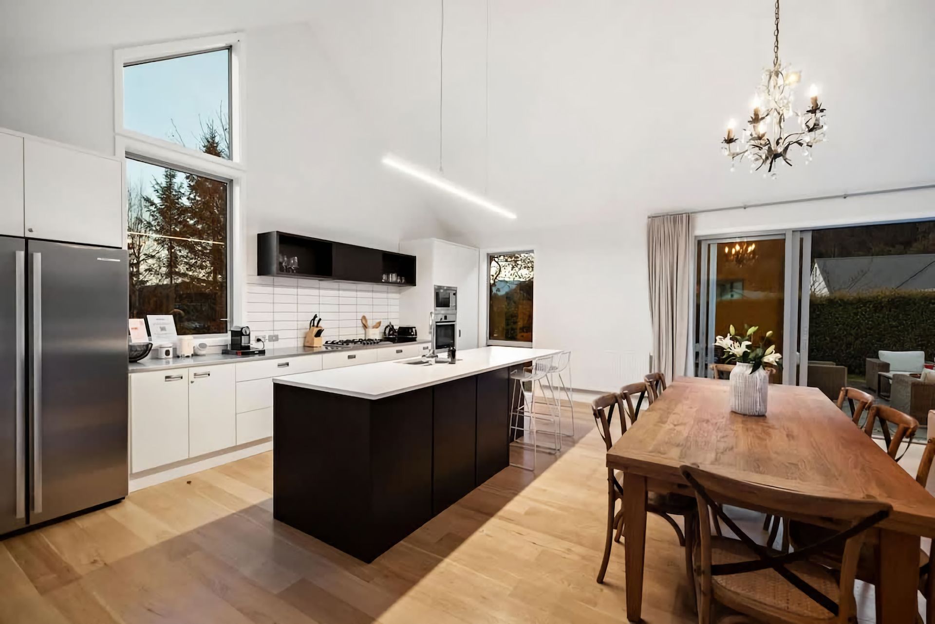 Relax in a comfortable living area with a cozy atmosphere. Large windows bring in natural light and provide views of the surrounding beauty. Enjoy outdoor living in a serene environment. Private garden space for al fresco dining, including a large barbeque or peaceful moments in the hot tub.