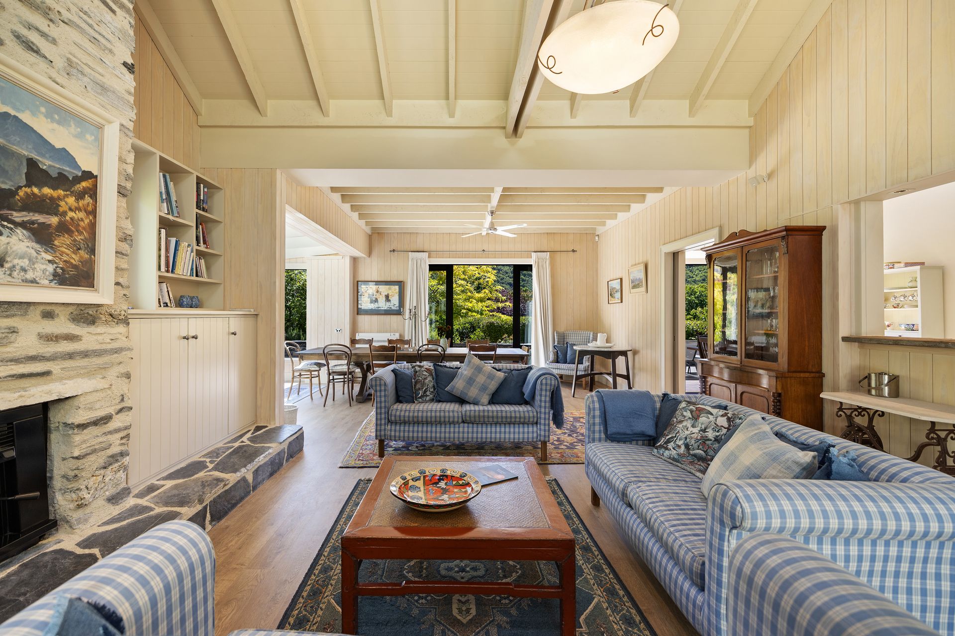 Set on a gently elevated site with sweeping views of the surrounding hills and mountains, this 4-bedroom, 3-bathroom residence showcases magnificent schist stone work, warm timber accents, and thoughtful design throughout.