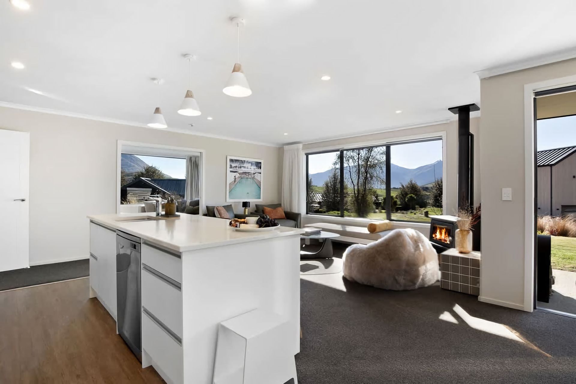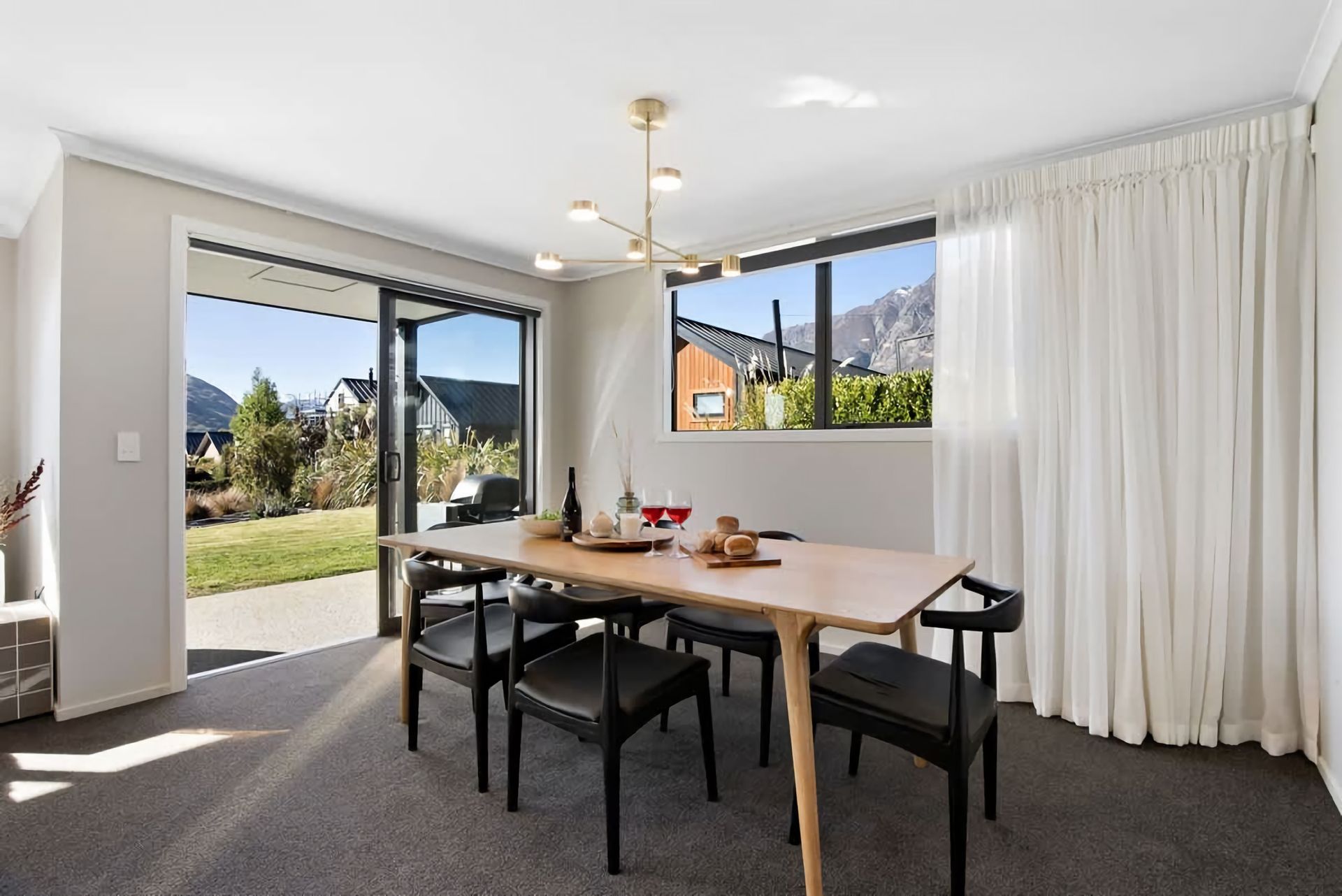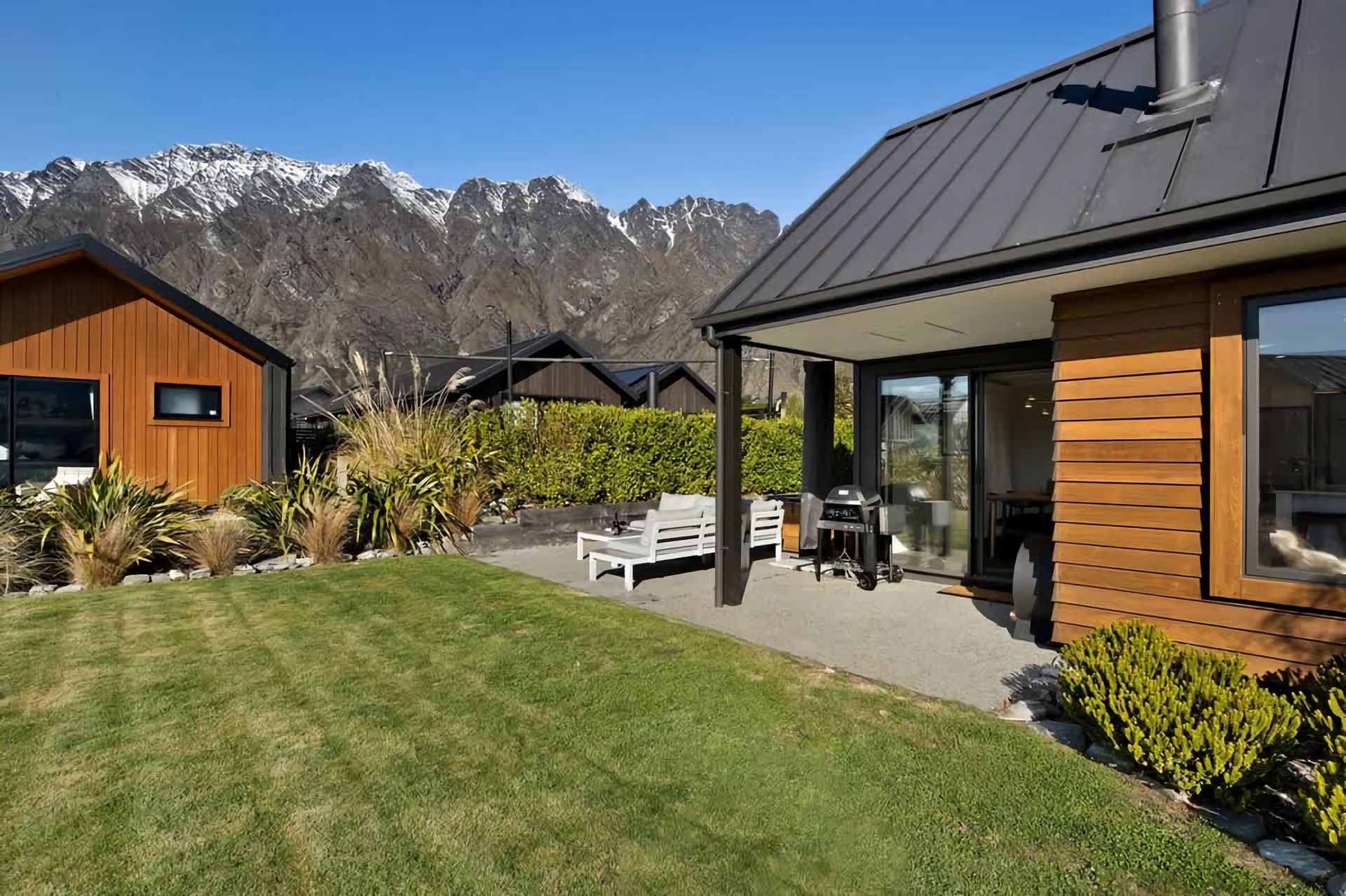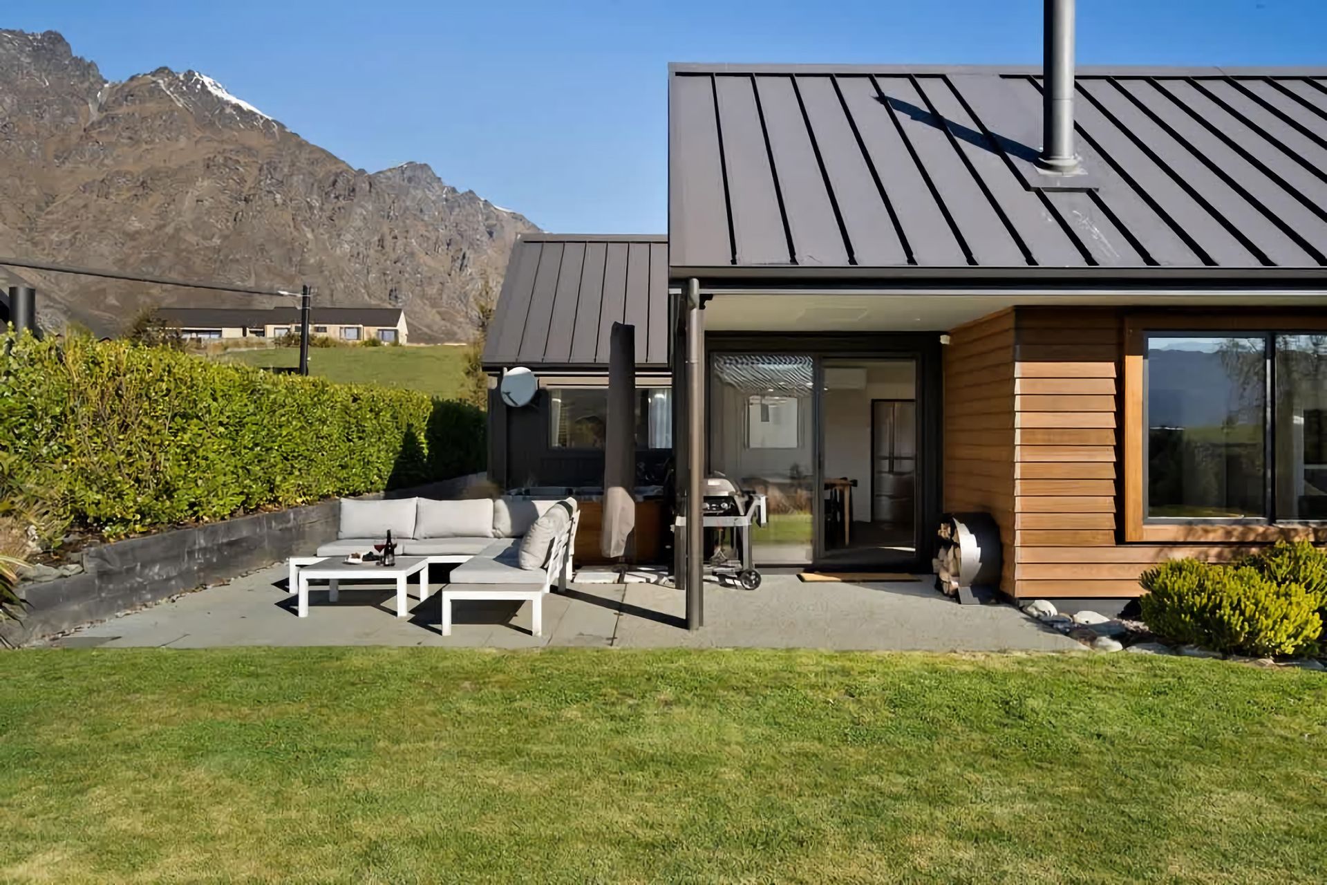 With its modern amenities and warm ambience, our spacious living area is ideal for unwinding after a day of exploring. The fully equipped kitchen invites you to whip up delicious meals or simply enjoy a cup of coffee. Outside, opens to another spacious living space, with outdoor furniture, barbeque and a hot tub which provides a tranquil escape, perfect for sipping a glass of wine while watching the sunset. After a restful night's sleep in our comfortable bedrooms, you'll wake up refreshed and ready to explore the nearby attractions and experiences such as the Jacks Point golf course within walking distance of the home. Whether you're here to explore the city's cultural offerings or simply bask in the serenity of our neighbourhood, our holiday home is your perfect retreat.