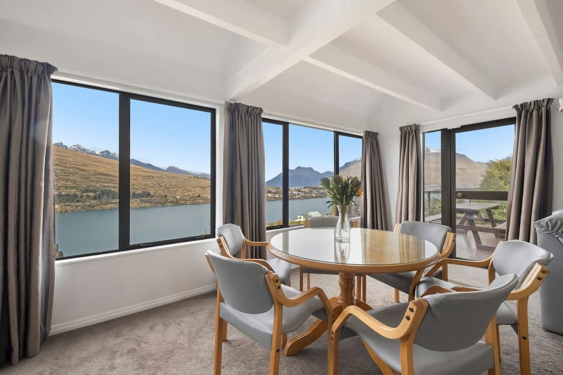 Escape to this serene and spacious holiday home with breathtaking views of Lake Whakatipu and the surrounding mountains.
